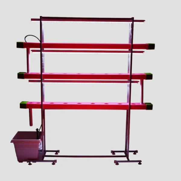 The system features NFT channels made from high-quality UPVC (UnPlasticized Polyvinyl Chloride). This material ensures durability, resists corrosion, and allows for easy maintenance, making it ideal for hydroponic gardening.
