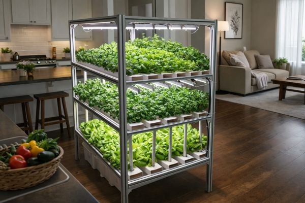 Aluminum is rust-free, lightweight, durable, and ideal for indoor hydroponic environments.
