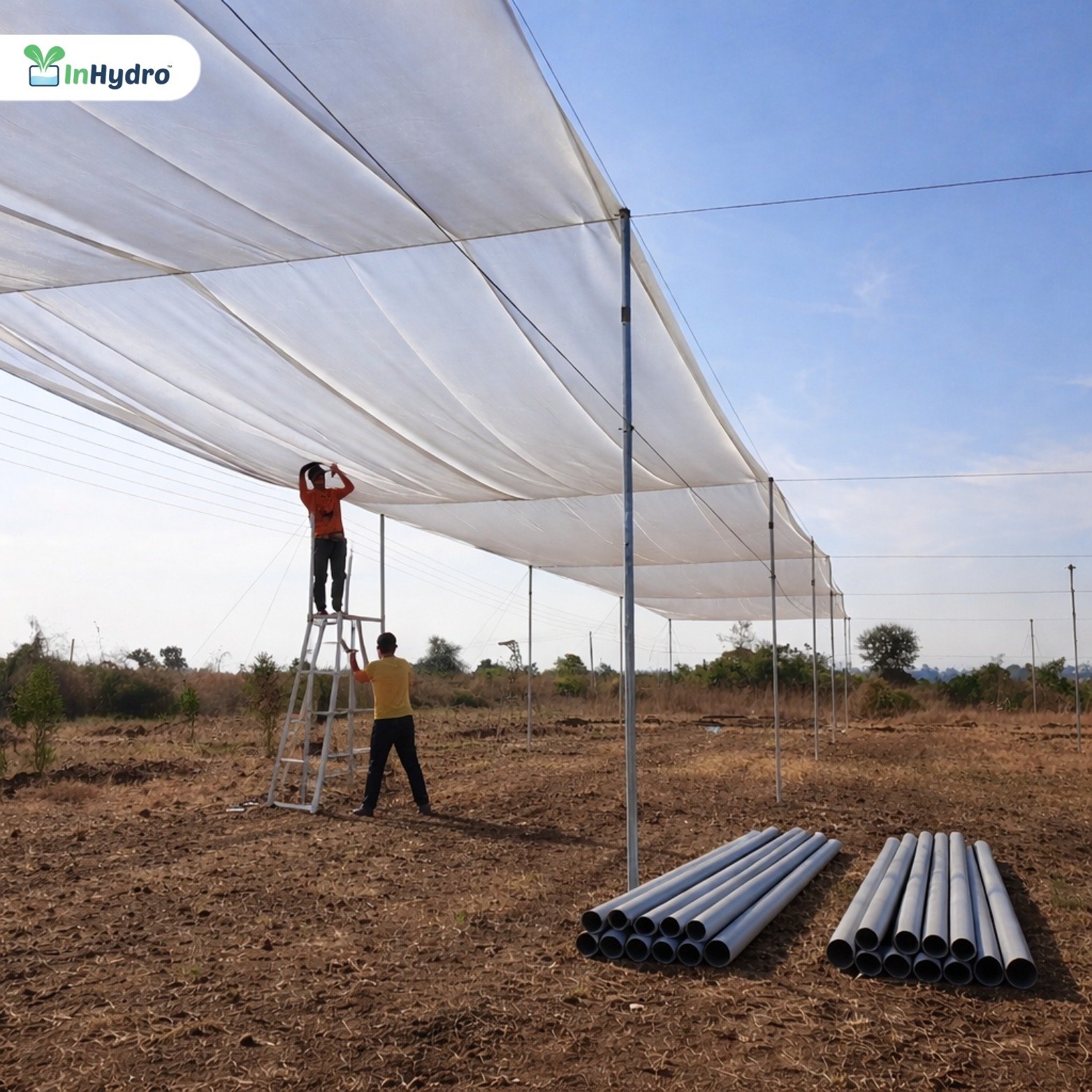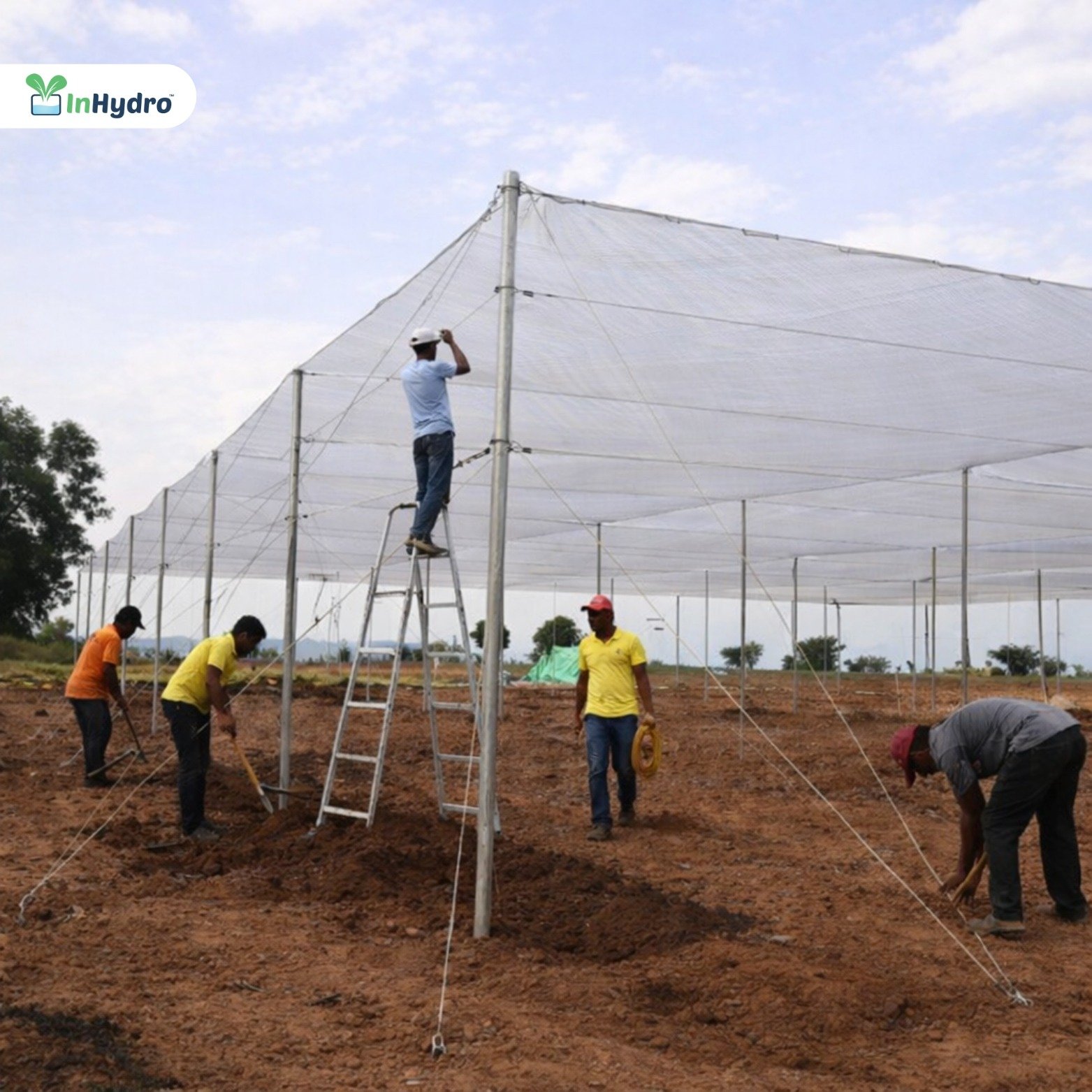 INHYDRO Cable Purlin Shade Net House | Low-Cost & MIDH Subsidy Ready