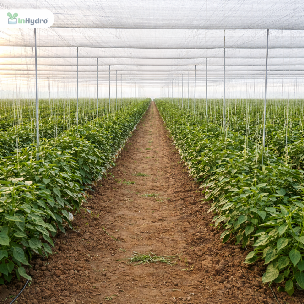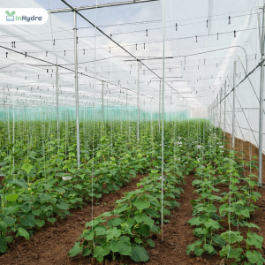 The Inhydro Naturally Ventilated Polyhouse is a professional-grade protected cultivation solution designed to provide an optimal micro-climate without the need for expensive cooling systems. Engineered with a robust GI (Galvanized Iron) pipe frame, this structure utilizes a passive airflow design to naturally regulate temperature and humidity. It is fully NHB and MIDH compliant, making it the perfect choice for farmers seeking government subsidies. With high-quality UV-stabilized poly-film and insect-proof netting, it ensures your crops remain protected from extreme weather and pests, delivering a consistent, year-round harvest.